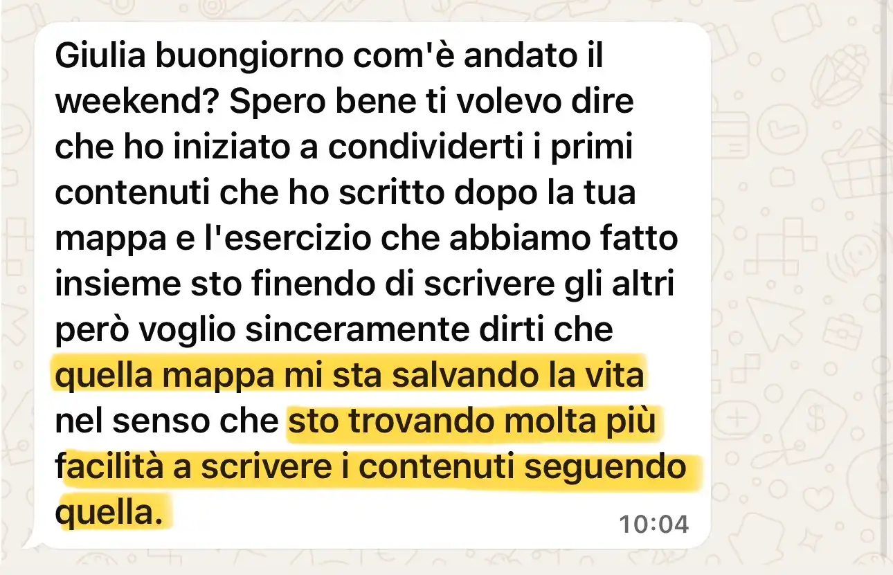 No, non ti scriverò io i contenuti. Se lo facessi, tu non impareresti come farlo in autonomia. Per questo motivo durante il percorso dovrai scrivere in autonomia i tuoi contenuti e io subentrerò con le correzioni.