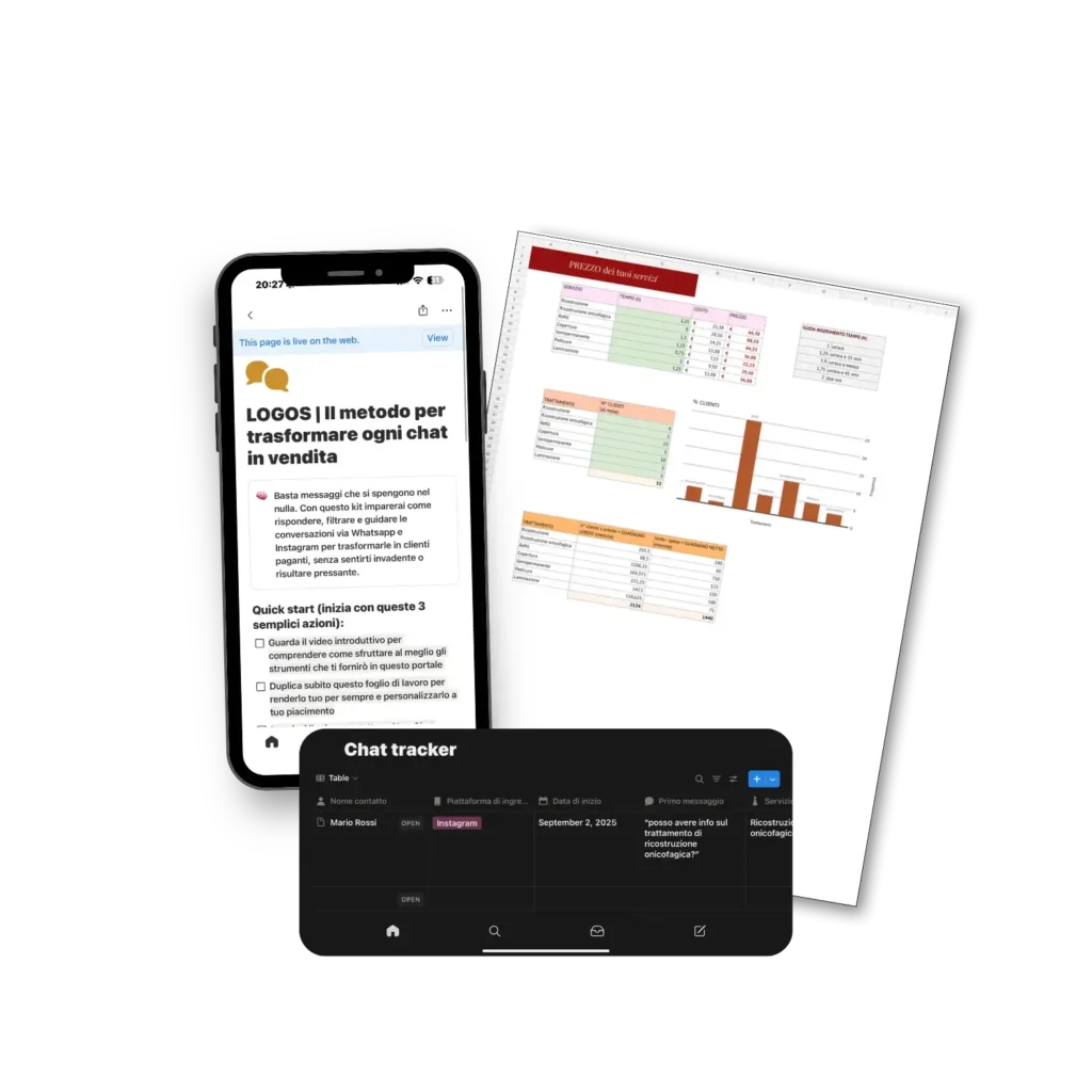 Logos ti permette di fronteggiare la parte operativa della vendita diretta in dm e tutte le sue possibili difficoltà annesse (obiezioni, dubbi, insicurezze del cliente che ti scrive). Il Chat Tracker è uno strumento fondamentale per tenere traccia delle richieste che ricevi, delle conversioni e dell’andamento generale della tua comunicazione sui social.