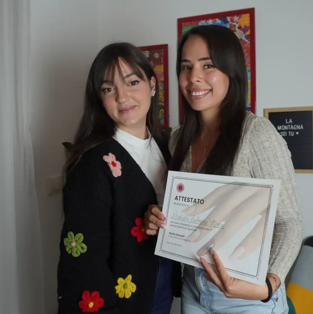 Inizio ad essere contattata per tenere dei corsi e decido di buttarmi anche qui. Apro la mia accademia online e fisica. Formo decide di onicotecniche, provenienti anche dall’estero (Spagna, Svizzera, Belgio).